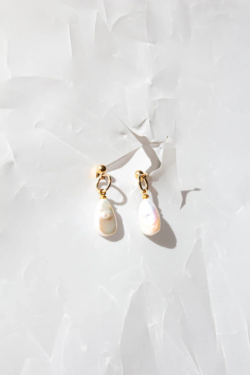 The Dreamiest teardrop pearls dangling from drop studs! These earrings are the one! Easy to wear everyday, made to move with you in every part of life. (except for swimming/shower - keep away from moisture!)